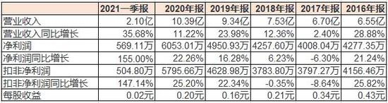 2021年一季度营收2.1亿,同比增长35.68%,净利润569万,同比增长155%。