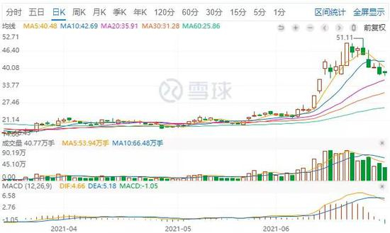 公司股价的启动似乎比较晚,到6月初出现了较为明显的涨势,股价从6月4日的22.33到6月30日的收盘价38.41元,一个月不到涨幅达72%。