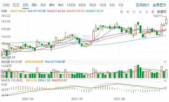中科创达是一家深耕智能操作系统的软件公司,也是鸿蒙OS的首批生态合作伙伴,公司股价并没有在2021年6月迎来暴涨,股价自5月最低价120.24元到6月30日收盘价157.06元,涨幅约30%。