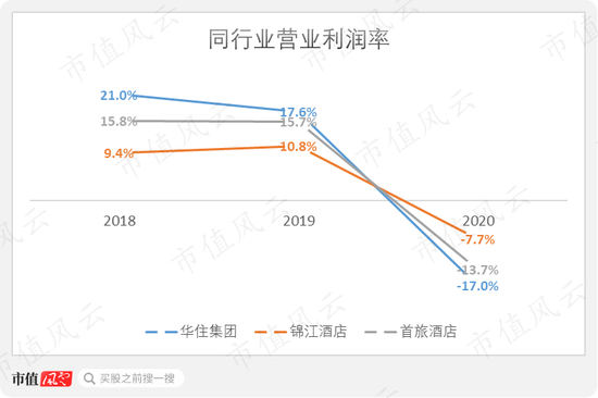 2018年,华住集团(01179.HK,HTHT.O)、锦江酒店(600754.SH)和首旅酒店(600258.SH)的营业利润率分别为21.0%、15.8%和9.4%。