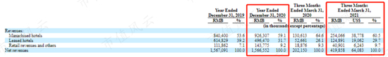 公司的营收构成中,以向加盟管理酒店收取的特许经营费和管理费为主,并且近年来呈现逐年递增态势,从2019年的53.6%增长至2020年的59.1%,再到2021年一季度的60.5%。