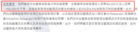 前期特许经营费通常按每间客房4000至6000元收取;持续特许经营和管理费用通常按每间加盟酒店总收入的5%至6%计算,按月度收取。