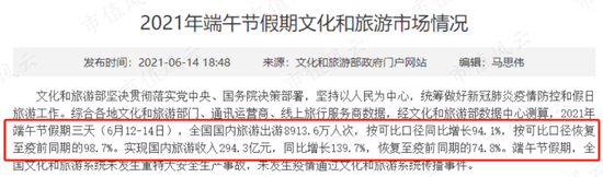 按照文旅部的统计,今年端午节国内出游人次同比增长94.1%,已经基本恢复至疫情前同期水平。