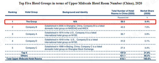 公司的酒店定位在中高档,根据弗若斯特沙利文的数据,截至 2020 年底,按客房数量计,亚朵是中国最大的中高档连锁酒店。