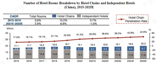 截止2020年底,连锁酒店的客房数量仅占中国酒店客房总数的31.5%,低于全球平均水平41.9%,并且远低于成熟市场美国72.9%的水平。