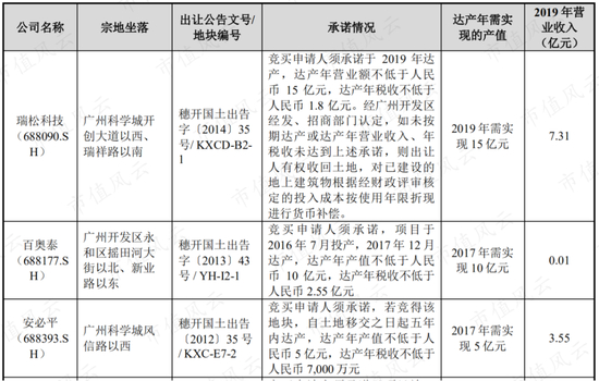但公司在回复函中称,公司与广州开发区签订的土地出让合同是广州开发区的一贯做法,已成功发行上市或拟发行上市的瑞松科技(688090.SH)等6家企业案例,在取得广州开发区相应地块时也附带有关产值和税收的承诺。