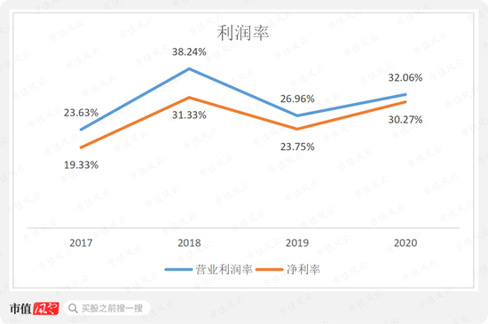 叠加上述对净利润有较大影响的所有因素,公司2017-20年的净利率分别为19.33%、31.33%、23.75%和30.27%,主要受销售费用率的影响较大。