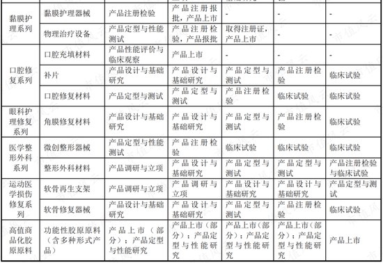 按产品成分是否含有胶原进行分类,公司产品可分为胶原产品和非胶原产品两大类。