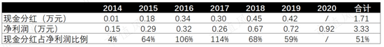 自2014年公司挂牌中小板至2020年摘牌,公司仅累计募集资金0.48亿元,却累计现金分红1.71亿,是累计募集资金的3.56倍,是累计净利润的51%。