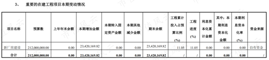公司新厂房建设预算为2.12亿,截止2020年底,该在建工程余额为0.23亿,进度为11%。
