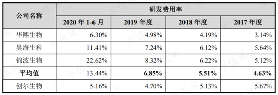 2017-2020年,公司的研发费用率分别为5.67%、5.13%、4.70%和6.06%,其中2018和19年低于可比公司均值。