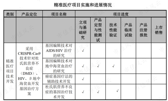 精准医疗业务,是指公司围绕基因编辑技术对AIDS/HIV治疗、地中海贫血治疗、癌症基因疗法、杜氏肌营养不良症的基因治疗等方面展开前瞻性医疗技术研发工作,但目前进度均处于临床前研究阶段,整体还存在较大的不确定性。