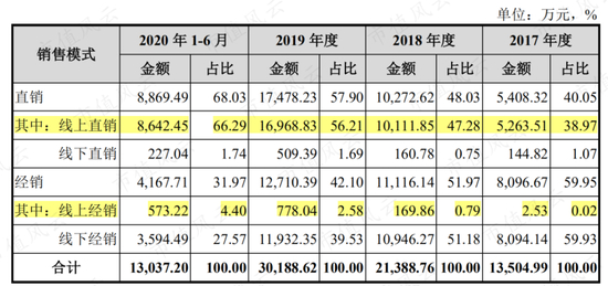 剔除线上销售的季节性影响,不考虑2020年上半年的数据,2017-2019年,公司的线上推广服务费迅速增长,分别为1093、2124、和4658万,对应的线上销售金额也在不断增长。