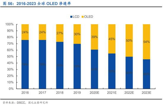 ▲全球OLED渗透率情况,图片来自国元证券。