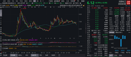尽管近期表现疲软,但受益于顺周期板块的景气,今年以来沈阳化工股价走势强劲,累计涨幅达29.94%。