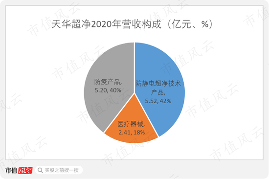 风云君发现,2020年,天华超净的收入增加了一个新的板块,即防疫产品,营收规模为5.20亿元。