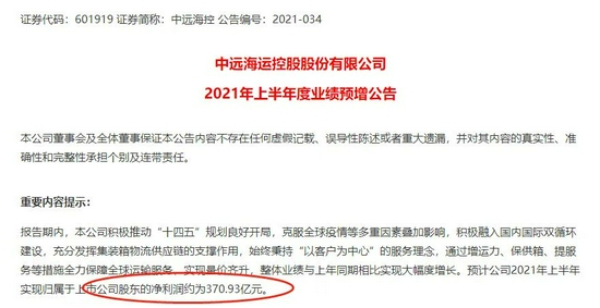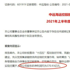 晚间公告热点追踪:中远海控半年暴赚371亿 业绩太亮还是不及预期?