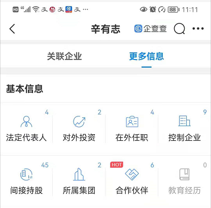 企查查信息显示,辛巴担任法人的企业有4家,对外投资企业2家,在外任职4家,控制企业9家,间接持股的企业则多达45家。