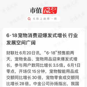 风云君曾对中宠股份、佩蒂股份和天元宠物均进行过覆盖,有兴趣的老铁可以下载市值风云APP查看相关研报。
