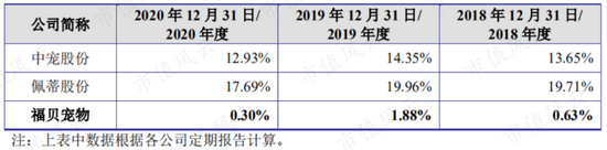 同期,福贝宠物净利率分别为15.31%、20.84%和24.98%,均高于中宠股份的4.36%、5.20%和6.78%,且差距在不断扩大。