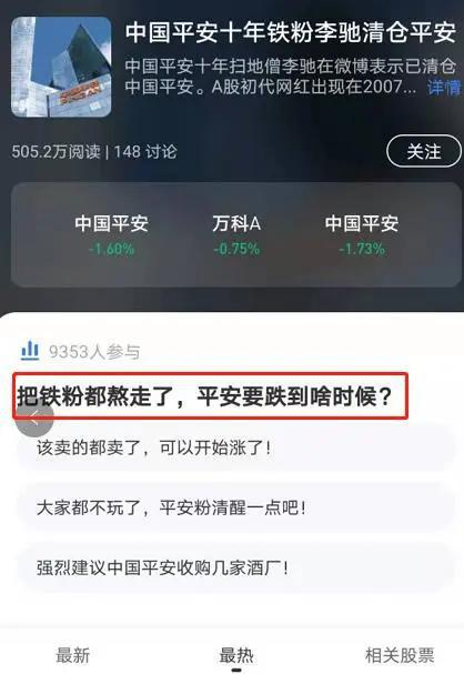消息一出,迅速登上雪球热搜。大家认为,把铁粉都熬走了,平安要跌到啥时候?
