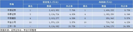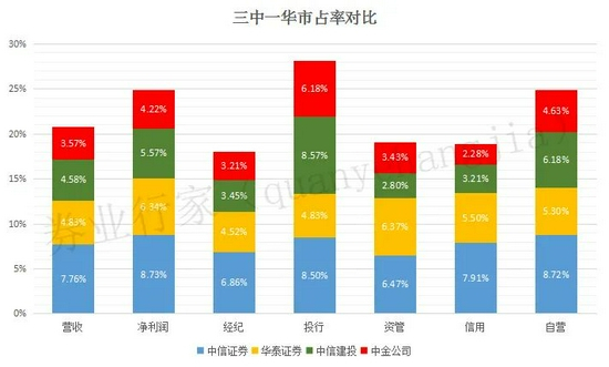 如果将三中一华作为整体,在证券行业的市占率究竟有多少呢?