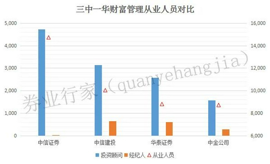 由于券商并未对外公布高管的分管领域,行家根据过往履历,大致锁定了三中一华可能分管财富管理的高管名单。