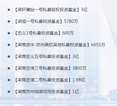 忠信资本旗下的旗舰融资平台梁商资本,全叫叫梁商资产管理(上海)有限责任公司,仅基金业协会公布的信息显示,梁商资本旗下备案了21只私募基金。