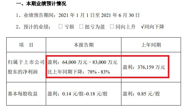 尽管二季度净利润转正,上半年总体也实现了盈利,但业绩预告披露: