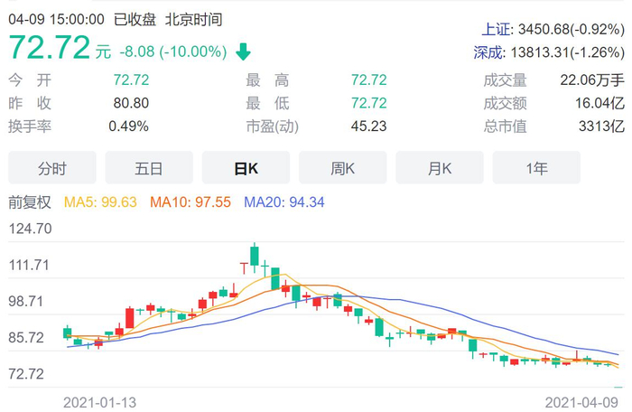 当天早上开盘,顺丰控股一字板跌停,股价创近当时的8个月新低,市值缩水约370亿元。