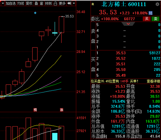 1300亿巨头北方稀土爆了 最近10天9个阳线 涨幅达77%