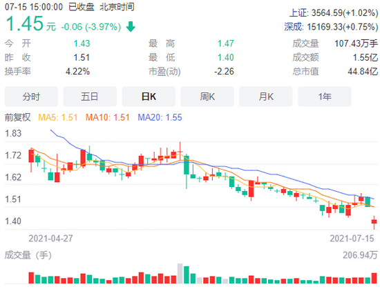 今日开盘后,搜于特股价即下滑,期间跌幅一度超7%。最终报收1.45元,跌幅为3.97%。