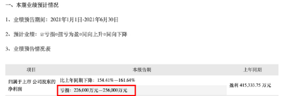 业绩爆雷!上半年业绩预亏最多25.6亿