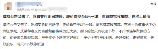 对此,有网友坚定看多:“稀土行情没到头,明天如果弱转强超预期就可以加仓干。”“减持不是妖股通行证吗?”