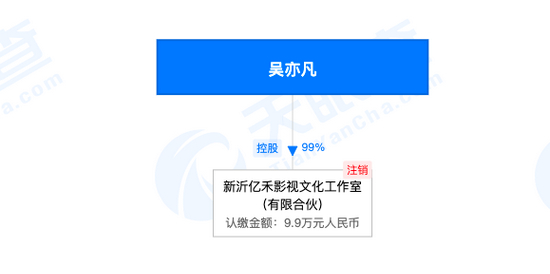 天眼查APP显示,吴亦凡名下的新沂亿禾影视文化工作室(有限合伙)已于去年9月14日被注销。此前,吴亦凡还曾担任天津星运文化发展有限公司、厦门亿和云起文化传媒合伙企业(有限合伙)、长兴亿和影视文化工作室(有限合伙)、长兴和纵影视文化工作室(有限合伙)的股东,后两家公司目前也已经注销。