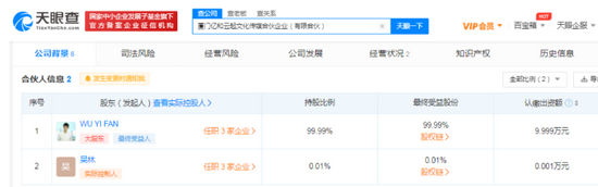 而目前,吴亦凡关联公司仅一家厦门亿和云起文化传媒合伙企业(有限合伙)为存续状态,其余均已注销。该企业执行事务合伙人为吴林(吴亦凡表哥),吴亦凡持股99.99%,为大股东及最终受益人。