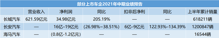 长城、长安、海马发布中期业绩预告 两极分化明显