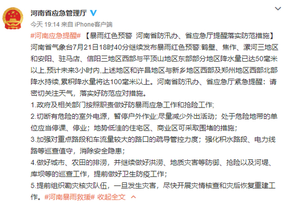 河南:暴雨红色预警