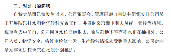 特大暴雨发生以后,上市公司纷纷通过公告向投资者告知受灾情况。