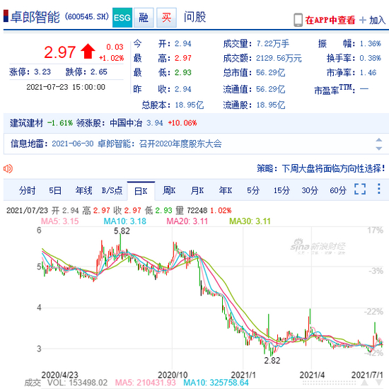 截至今日收盘,该股报2.97元,涨1.02%,最新市值仅56.29亿元。