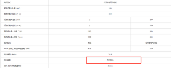 比亚迪官网信息显示,汉EV电池类型为刀片电池。