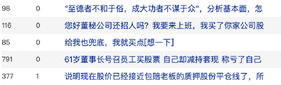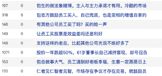 一边减持套现,一边让员工增持,此举意欲何为?公告披露后,股民也议论纷纷,多数投资者认为,董事长兜底的增持,这是利好消息,至少老板对公司是有信心的。还有股民问董秘,“公司还招人吗?我要来上班。”