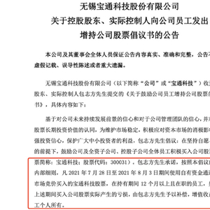 7月28日一早,宝通科技发布公告表示,公司控股股东、实际控制人向公司员工发出增持公司股票倡议书。