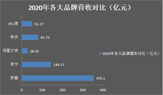 可以说鸿星尔克的营收成绩相比安踏、李宁、特步国际、361度来说,还是差得很远的。同期,同行业中的安踏、李宁、特步、361度收入分别是355.1亿元、144.57亿元、81.72亿元、51.27亿元。其营收还不到安踏营收的1/10、李宁的1/5。