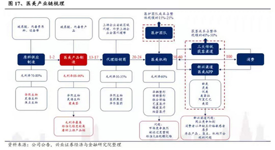 通过行业梳理数据发现,医美产业链中,在价值分配上,医美产品制造端更具话语权,即占据行业利润大头。其次才是医美平台,然后才是医美机构。