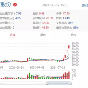 维宏股份8月2日再度涨停,股价报52.08元创3年以来新高。该股连续三个交易日20CM大号涨停。若从上周算起,6个交易日公司股价已经翻倍。
