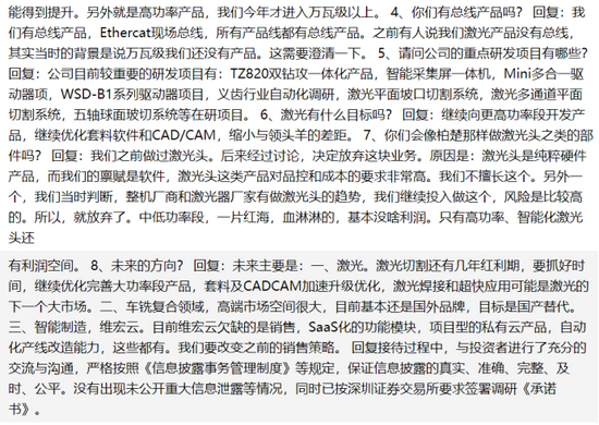 调研活动记录显示,有机构问,激光有什么目标吗?维宏股份回应称,继续向更高功率段开发产品,继续优化套料软件和CAD/CAM,缩小与领头羊的差距。
