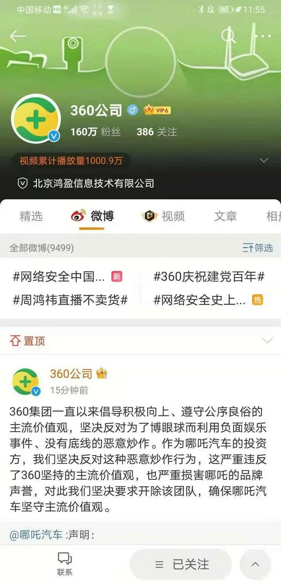 哪吒汽车的投资方360集团随后也发布声明称,坚决反对为了博眼球而利用负面娱乐事件、没有底线的恶意炒作;坚决要求开除该团队,确保哪吒汽车坚守主流价值观。
