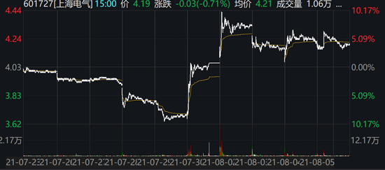 截至8月5日收盘,上海电气跌0.71%,收于4.19元,总市值658亿元。