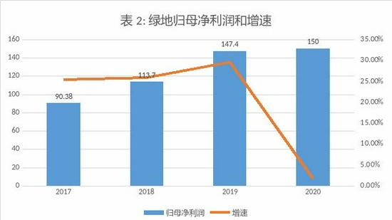 绿地集团2020年营业收入为4561亿元,增速仅为6.54%;2020年归母净利润150亿元,增速仅1.73%,与上年相差无几。